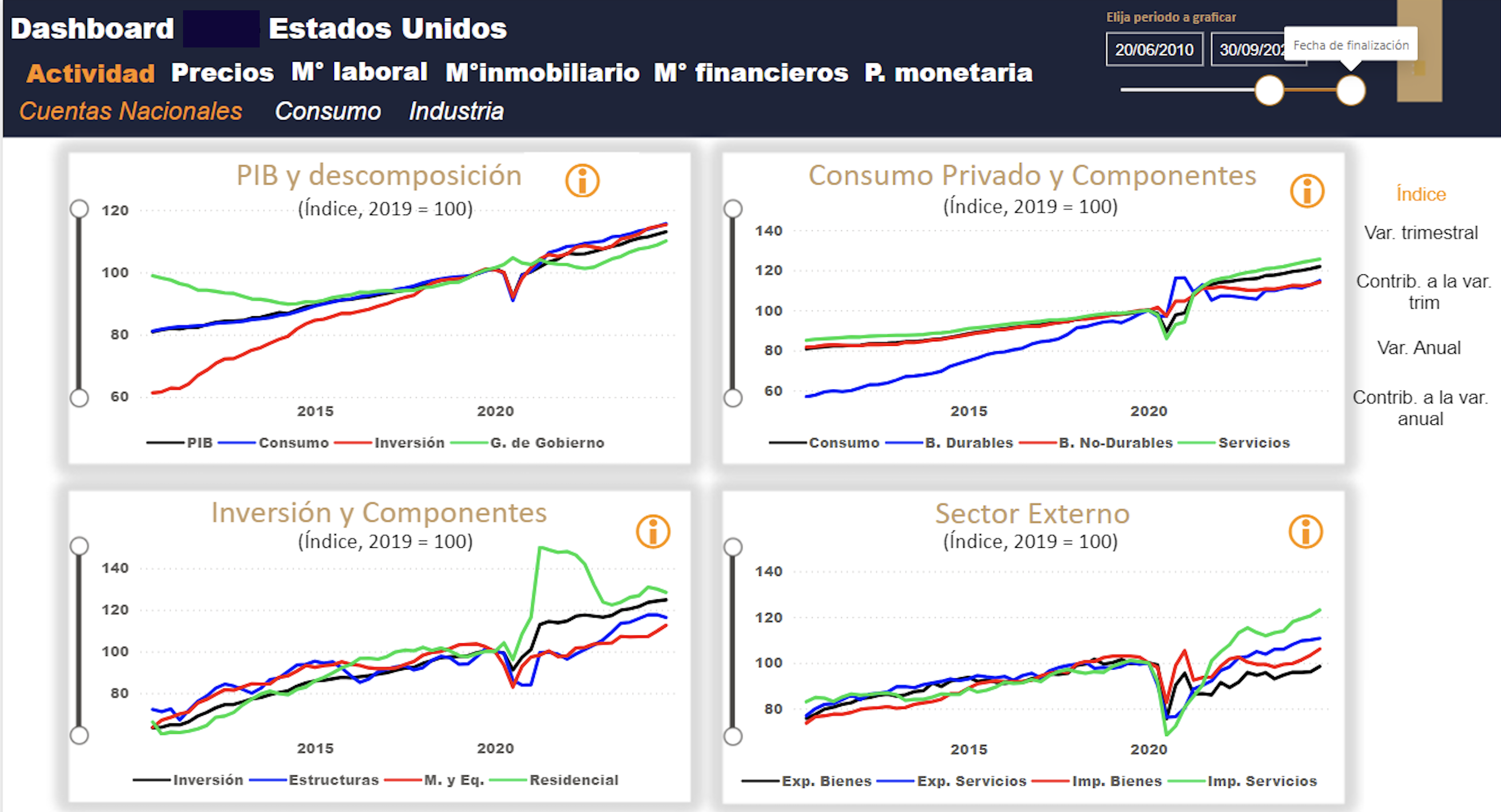 For organizations managing multiple relational databases or requiring granular data insights, Power BI offers even greater capabilities. Users can navigate between pages for deeper analysis with dynamic text and drill-through functionality. For example, in a dashboard analyzing the U.S. macroeconomic situation, each visual and text element dynamically connects to additional pages, offering further insights into key indicators.