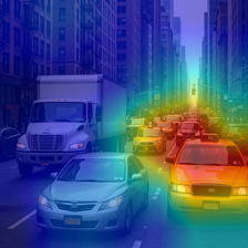 For instance, if a ResNet-50 classifies an image as a “taxi,” Grad-CAM Help us to see which set of neurons are activating on the final layer so we can have a clearler view on what the model is picking to make a decision. On the taxi classification we have the following: