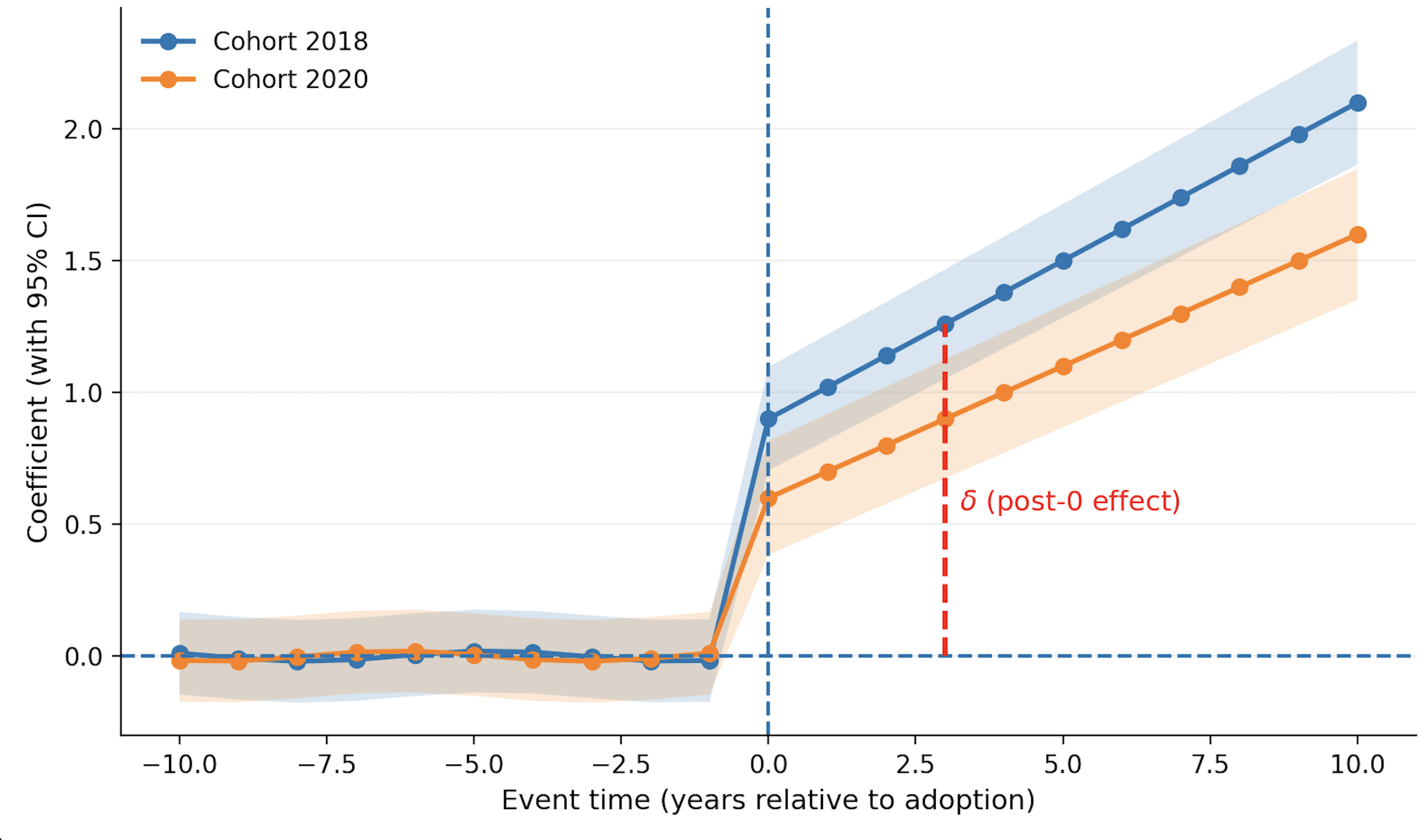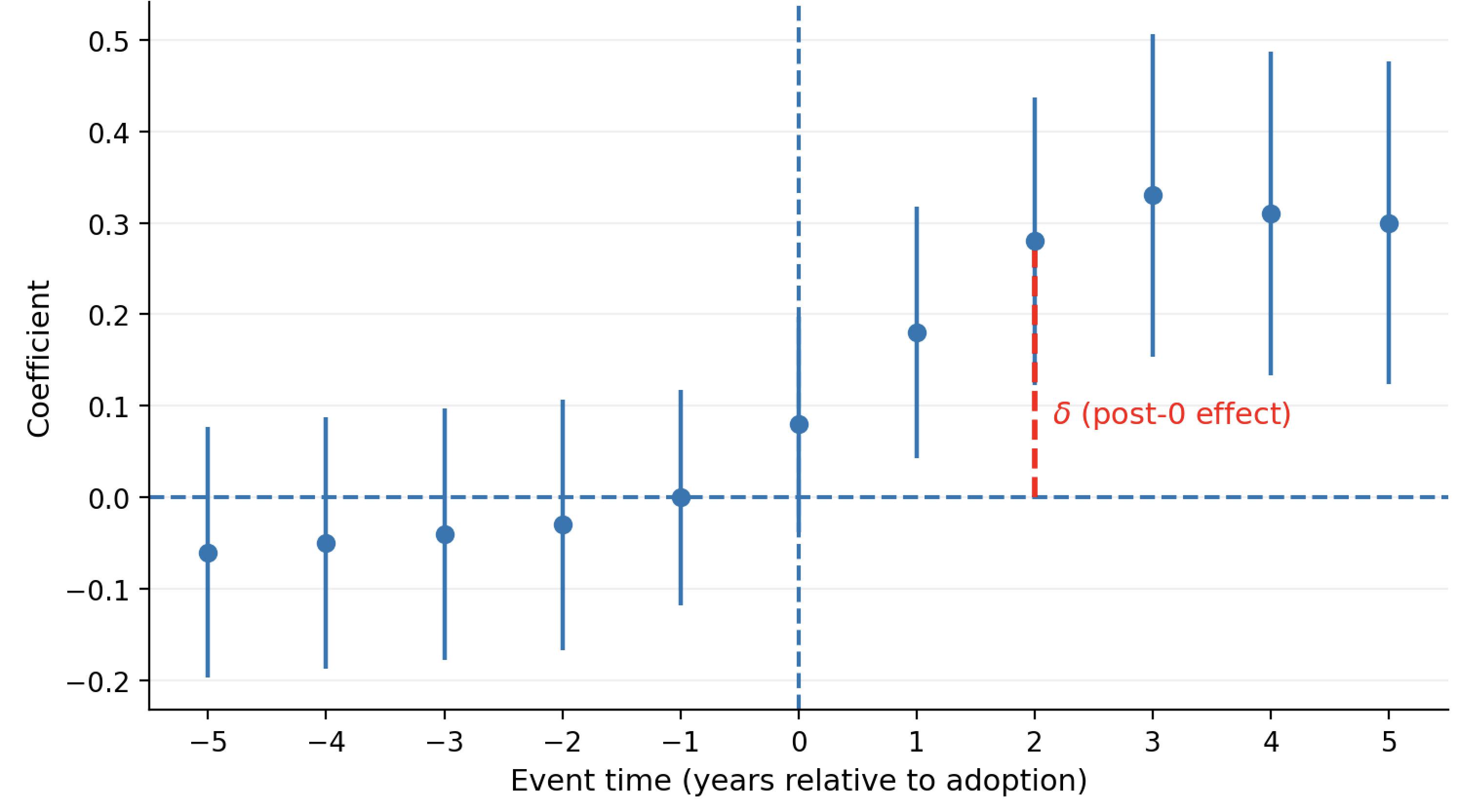 Economists Liyang Sun and Sarah Abraham proposed a clever fix: don’t mix the cohorts.Instead of throwing every school into one big pot, the Sun–Abraham method follows a “bottom-up” approach. It estimates effects separately by cohort and event time: